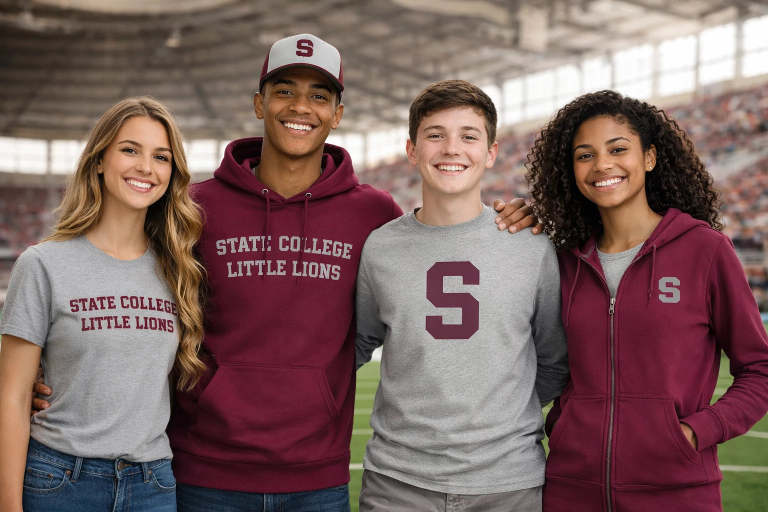 We create custom apparel for football, basketball, wrestling, baseball, soccer, cheerleading, cross country, and more. Our State College spirit wear is designed to reflect school colors, team pride, and a professional look for students and supporters.